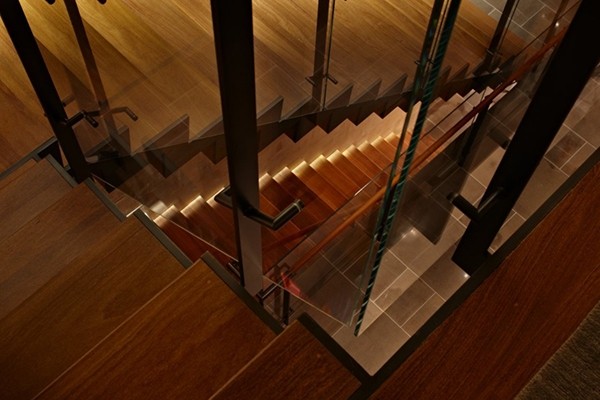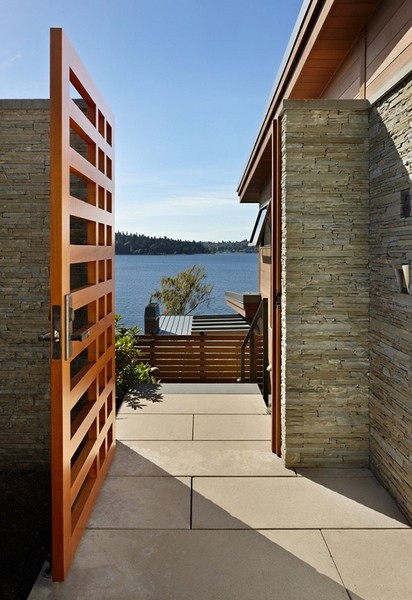 McClellan Architects建筑设计工作室打造的这幢住宅令人印象深刻。由西雅图McClellan 建筑师负责设计,住宅建设在一个陡峭的滨河山崖上,客户希望可以将钢结构呈现出来,并能视觉无窒碍的观赏湖水外景。房子内部主题围绕开放式中央厨房,室外将裸露的钢结构与树精心设计布置显得非常自然。一个威尼斯灰泥背景墙于黑钢楼梯、斯卡帕灵感的细节融为一体,晚上LED灯光斜射在这个墙面上,看起来像金色的叶子。电梯将个房间和车库相连接,为电动汽车充电的太阳能电池板安装在一个绿色屋顶上,在这里也可以坐在公寓的楼顶欣赏空阔的湖面,享受着微风拂面的惬意生活。