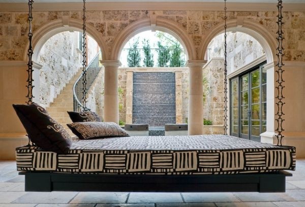 说到吊床,我们往往想到的是度假时的惬意感受,2颗树,一张网,随意平躺,仰望天空,吹来的或是清凉的海风亦或是清新的森林之风,于是我们爱上了这一摇荡中的欢愉。其实,吊床也可以带回家,家具设计师把一切变得无所不能。家居吊床,不仅仅是简简单单一张网、一块布,而是将卧床予以悬挂,使卧躺时的感受更加舒适。